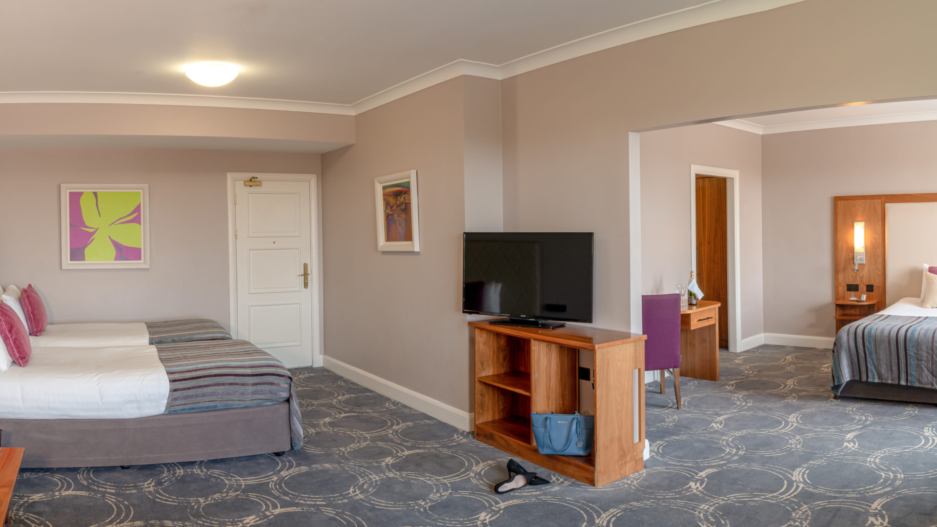 These rooms are all en-suite with separate bath and power shower. These rooms have high-speed WiFi, workstation, power shower, heated mirror in the bathroom, two 28 inch TV’s. Included in each room are complimentary bottled water, tea & coffee making facilities & telephone.